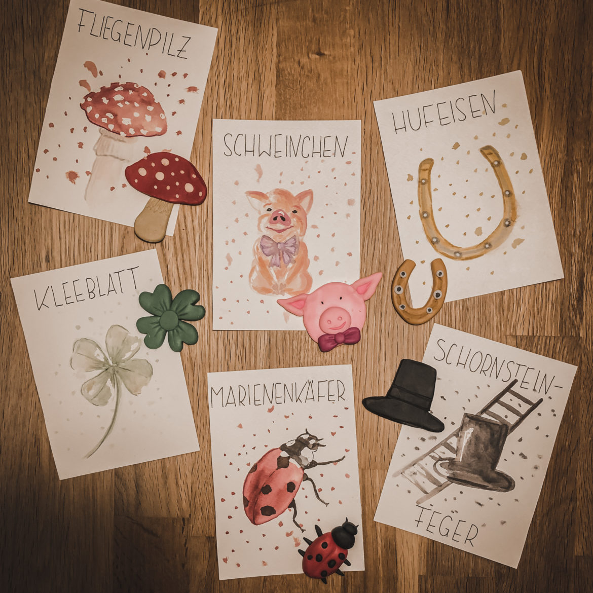 Aus diesem Grunde habe ich mir mal die gängigsten Glückssymbole geschnappt und zu Papier gebracht.