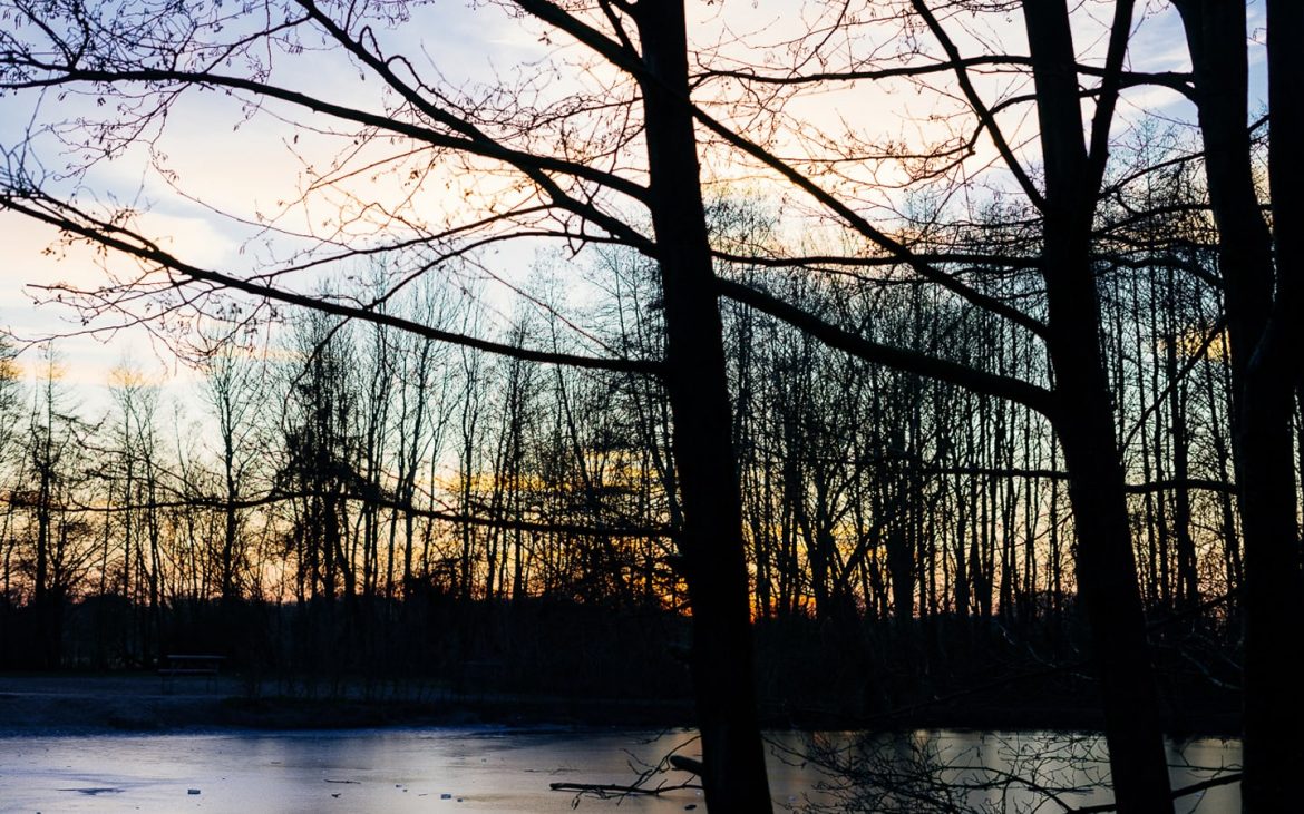 Die Sonne stand schön tief und ich begann munter zu knipsen. Viele freundliche Hunde und Besitzer kreuzten meinen Weg. Und ich war ganz in meinem Element. Zu Anfang merkte ich gar nicht wie schnell die Zeit verging. Als ich aber beim See ankam, war die Sonne schon fast hinter einer Anhöhe verschwunden. Gerne wäre ich noch auf die andere Seite des Sees gelaufen, aber dann hätte ich wohl gar nichts mehr vom Sonnenuntergang gesehen. Ich habe mir also einen schönen Spot gesucht und bin einfach dort geblieben. Gegenüber vom See war eine Familie mit ihren Hunden unterwegs. Die beiden müssen noch sehr jung gewesen sein, so wie die getobt haben. Ich habe mir eine ganze Weile das wilde Treiben angesehen und auf die blaue Stunde gewartet. Aber sie kam und kam nicht. Ich hatte mich wohl mächtig verrechnet. Der Weg der Sonne war doch länger als ich vermutet hatte. Irgendwann waren meine Finger so eingefroren, der Akku meiner Kamera leer und mein Magen auch, das ich entschied nach Hause zu fahren.